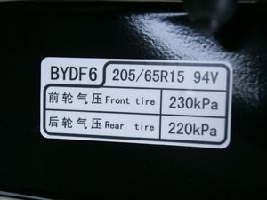 比亚迪F6 2009款 新财富版 2.0L尊贵型 (轮胎标识信息)