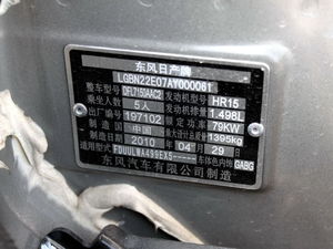 日产 玛驰 2010款1.5XV自动易智版 (车辆铭牌)