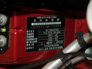 标致308 2011款 2.0AT尊尚型 (车辆铭牌)